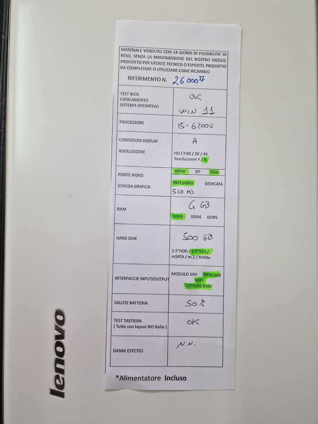 🟡 GRADE C qualche hardware potrebbe essere rotto o mancante (ad esempio non funziona la batteria)